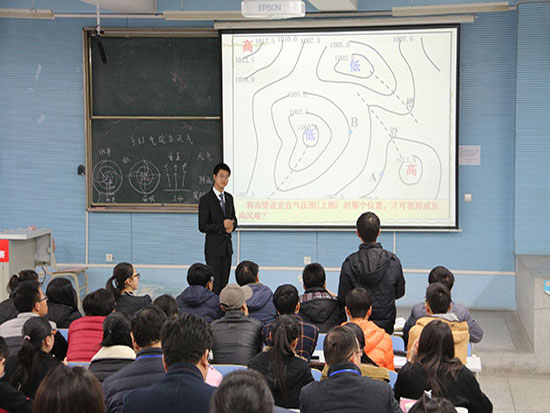 李旭亮用“火烧赤壁”引题主讲的《气旋与天气》参赛课堂,将历史实例与地理知识相结合,在多学科结合的基础上,增加了课堂的灵活性和吸引力。“孩子们一声 ‘老师好’给我的成就感,足以支撑我在三尺讲台上坚定前行。”在高中时代便对教师这一职业有着深深向往的李旭亮,离自己的梦想又近了一步。