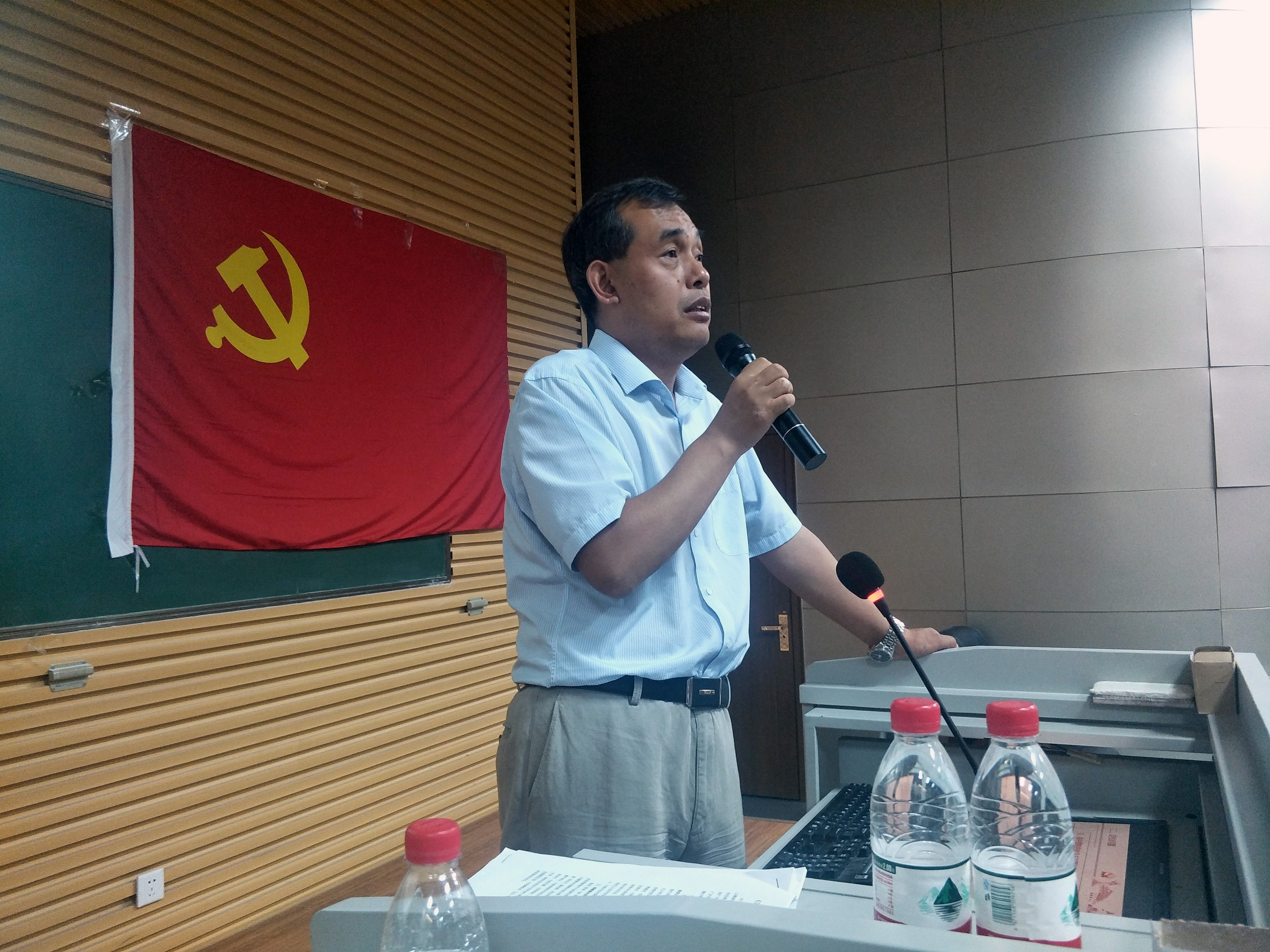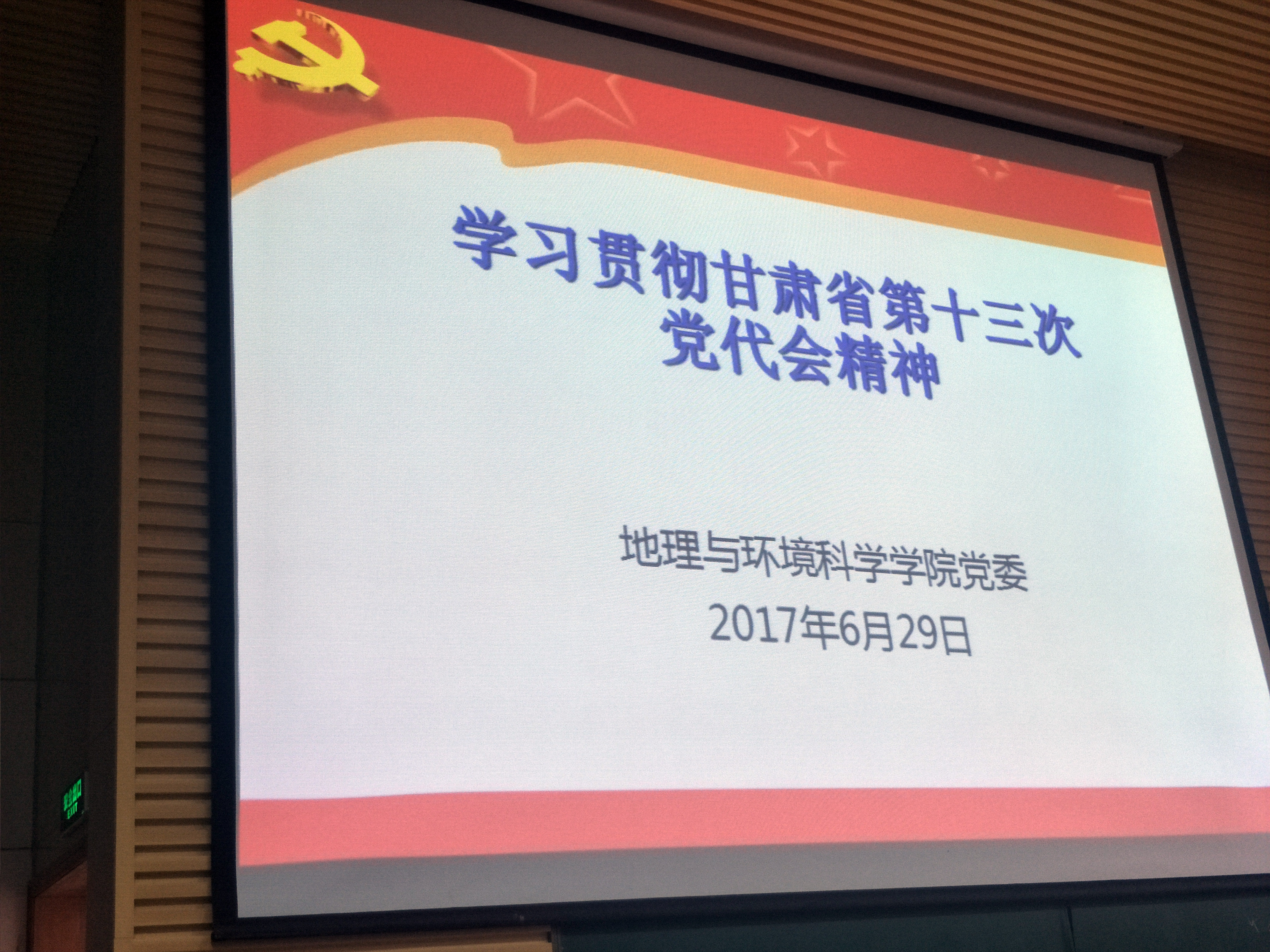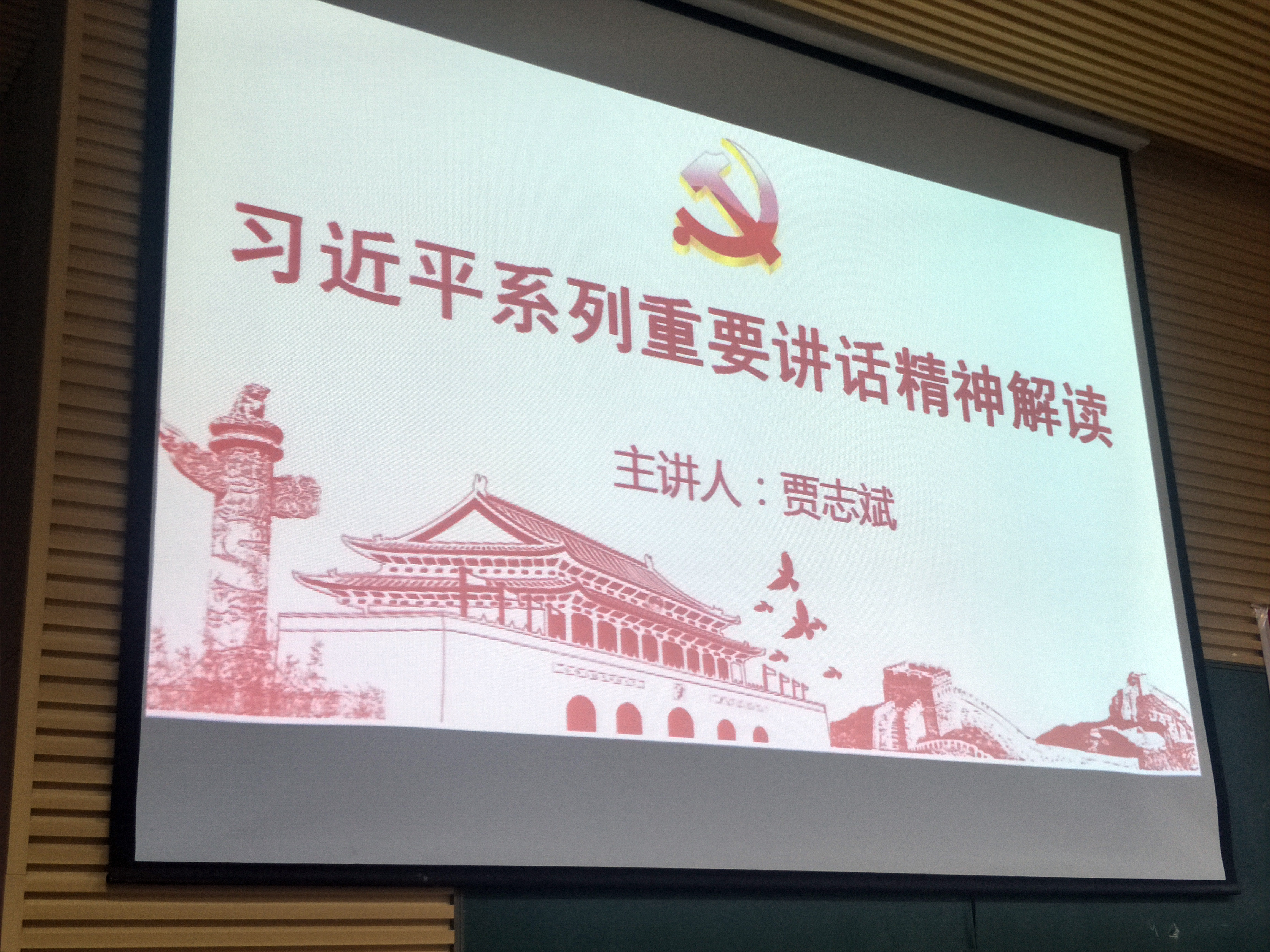 随后,党委书记贾志斌为研究生、本科生党支部党员作了题为《习近平系列重要讲话精神解读》《加强国际合作,共建"一带一路",实现共赢发展——学习习总书记在”一带一路”国际合作高峰论坛开幕式上的讲话》和《学习贯彻甘肃省第十三次党代会精神》的报告。