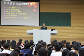 杨老师针对新生入学后走进一个新环境,能够影响心理健康的不利因素逐一作了分析。主要讲了以下八个方面的问题:1.为什么说心理问题是世界观问题;2.无法改变的只能适应;3.必须正确选择比较对象;4.谁也无法堵住别人的嘴;5.什么应当满足,什么永不满足;6.不做办不到的事情;7.坚决戒掉各种恶习;8.只有适合自己才是最好的。同时还介绍了自己开发的益智手操与手指操及《思维转换与观念更新》书稿的部分内容。