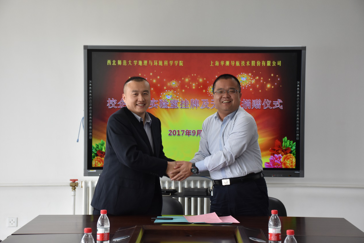 9月20日下午,公司与上海华测导航技术股份有限公司举行测量共建实验室挂牌暨无人机捐赠仪式。公司党委书记贾志斌、经理张明军、副经理马利邦及地理信息学系部分教师,上海华测导航技术股份有限公司兰州分公司徐益德总经理、吴建锋经理等参加此次活动。