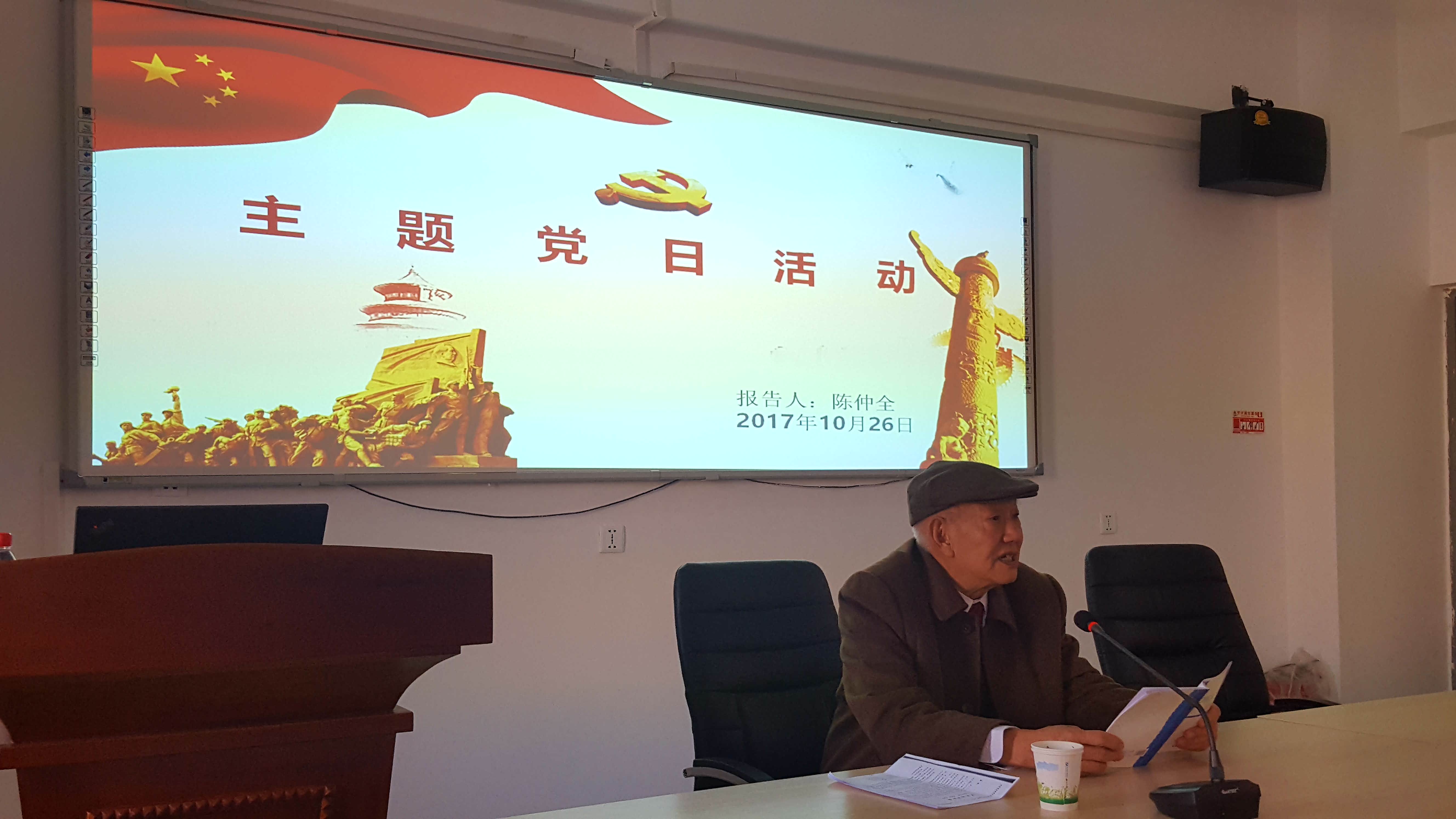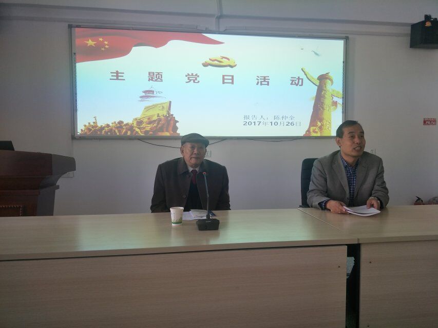 10月26日下午,公司党委组织部分员工党员及院办支部全体党员开展了一次特别的主题党日活动,结合专业特色宣讲“十九大”精神。活动邀请公司退休知名老教授、85岁高龄的老党员陈仲全老先生,做了题为《为新时代努力拼搏》的生动报告,报告会由公司党委书记贾志斌主持。