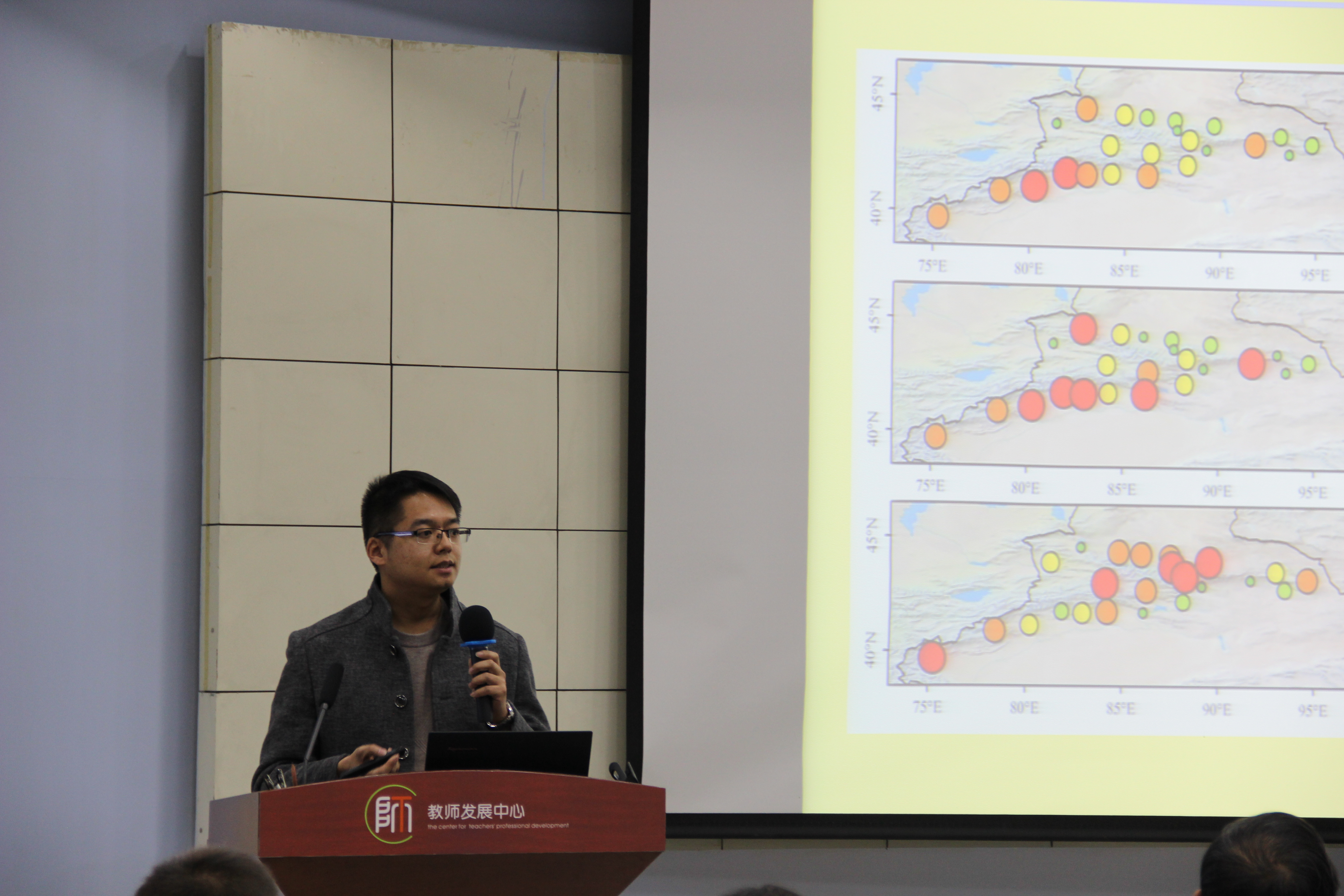 论坛上,中国气象局兰州干旱气象研究所张宇副研究员、伟德BET官方网站孙美平副教授、中国科公司西北生态环境资源研究院(筹)周海博士、伟德BET官方网站王圣杰博士和赵雪雁教授围绕“寒旱区气候变化与生态水文过程”主题,分别作了题为《2016年中国区域性干旱事件特征、成因及影响》、《西北地区冰川水文过程及气候变化影响研究》、《基于稳定同位素技术的典型固沙植被水分利用策略研究》、《新疆天山降水稳定同位素影响机制研究》和《高寒生态脆弱区农户对气候变化的感知与适应》的学术报告。