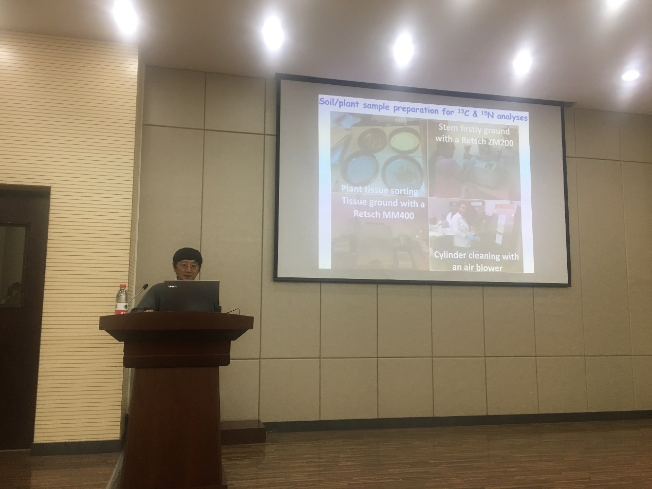 何新华研究员首先介绍了13C/15N稳定同位素在农业、生物和生命科学研究中的重要作用及基本原理,然后从田间选址、微区布局、田间操作技术和土壤与植物取样等角度系统阐述了13C/15N稳定同位素的最新监测技术,并就地上-地下系统中碳氮转运结果进行了讲解。报告结束后何新华研究员与在座师生就相关问题做了交流,答疑的过程中也对同学们以后的科研和学习提出了指导性建议,并参观了公司同位素实验室。