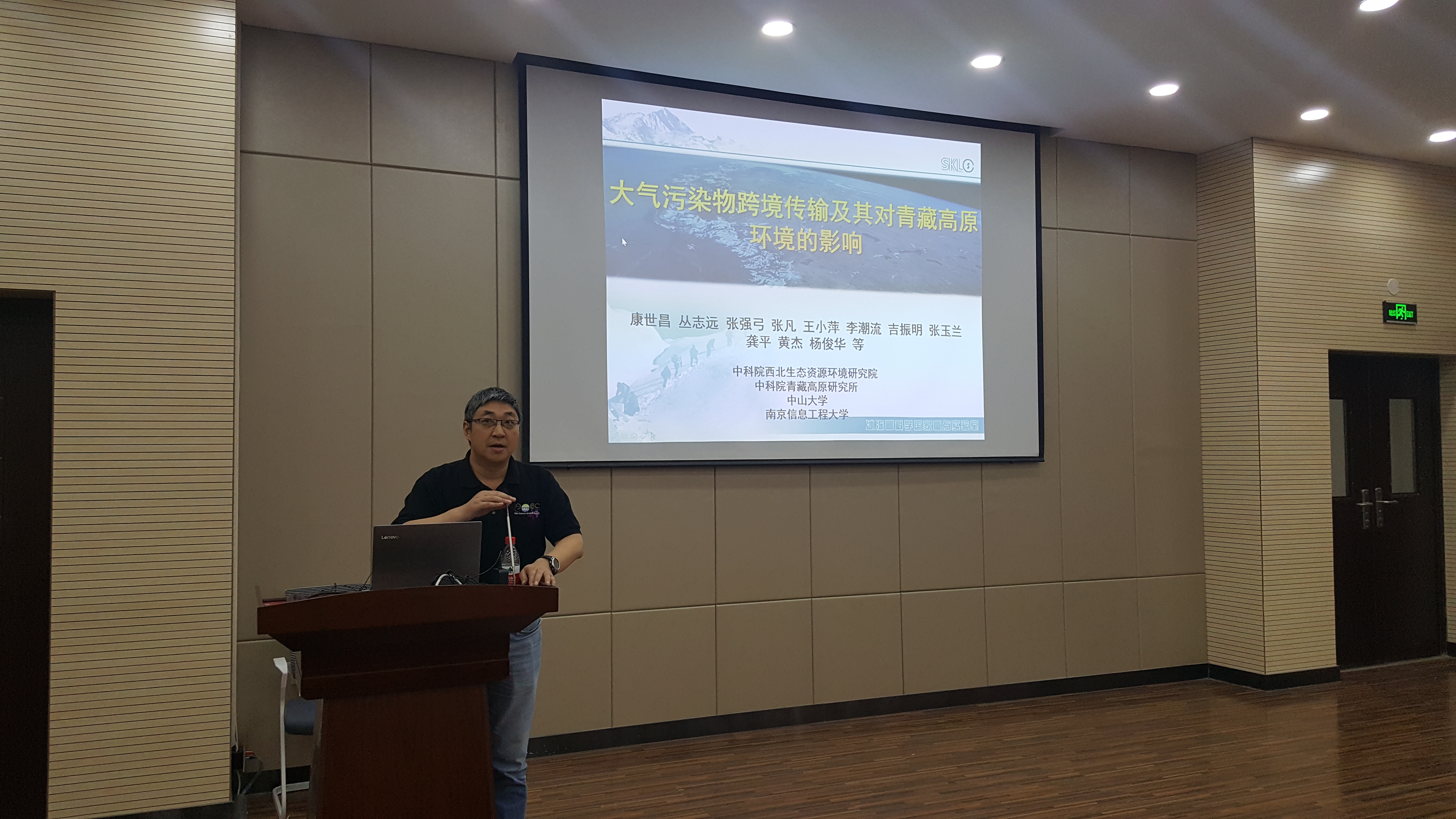康世昌研究员从污染物的历史记录、大气污染物的现状及来源、大气污染物的跨境传输过程及机制、大气污染物的气候效应、污染物对生态系统的影响等方面深入浅出地关于大气污染物跨境传输对青藏高原环境的影响作了系统的介绍。
