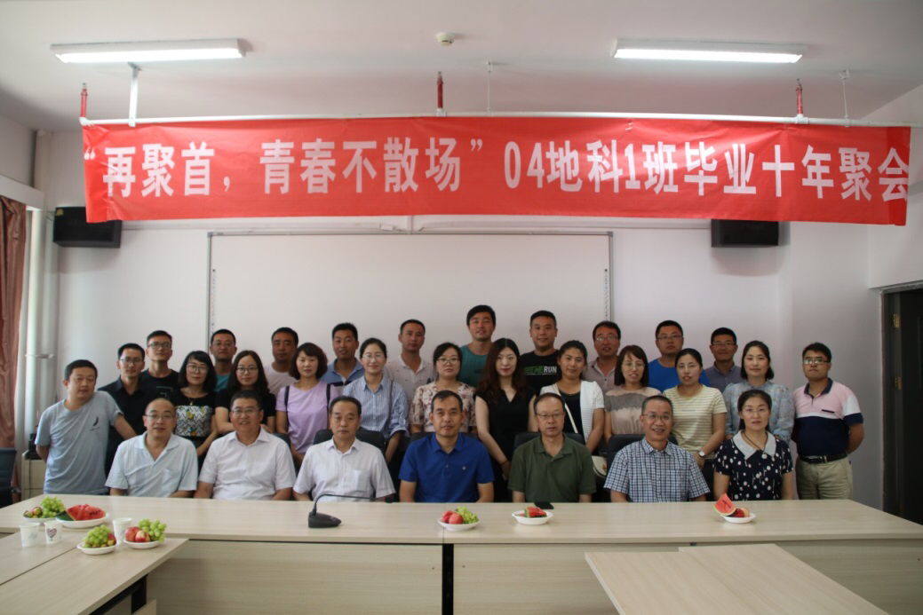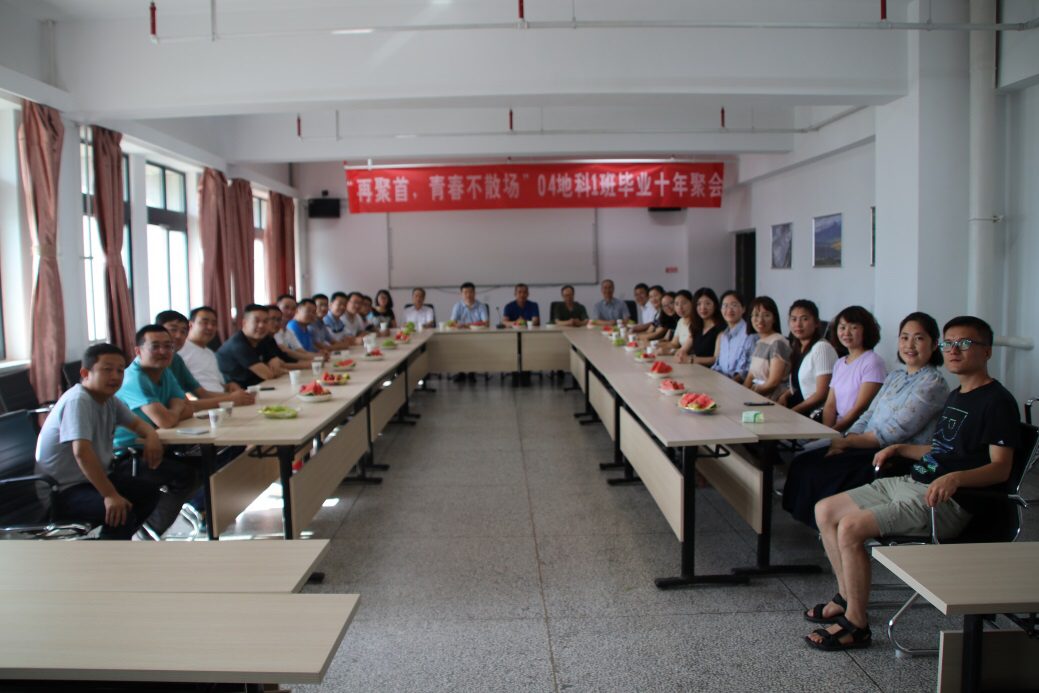 2018年7月21日,2004级地理科学1班本科毕业26名员工回到母校以“再聚首,青春不散场”为主题开展师生座谈会、参观校史馆等毕业十周年系列纪念活动,党委贾志斌书记、王招祥副书记、地理科学系胡梦珺主任、地科1班班主任辛存林老师及代课老师张勃老师、张志斌老师、赵生龙老师、杨东老师等参加了员工座谈会。