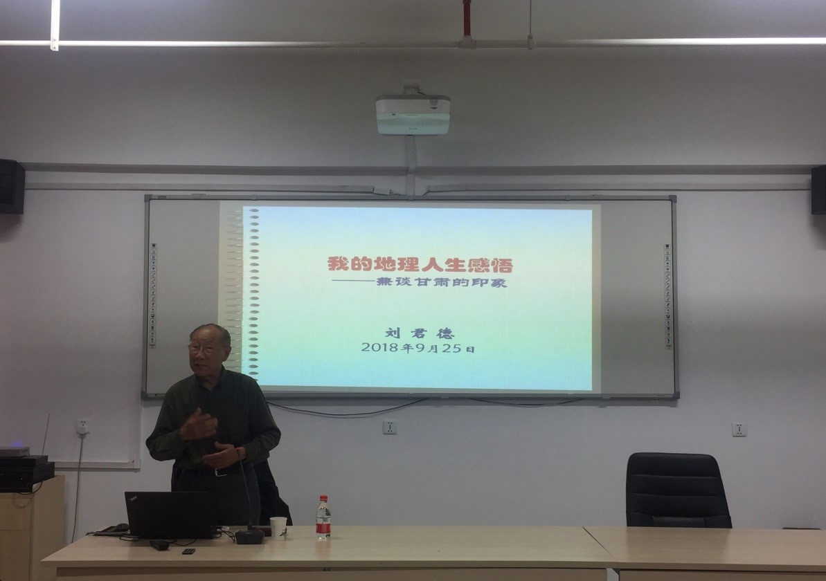 9月25日下午,应公司邀请,华东师范大学刘君德教授来公司进行学术交流,并作了题为《我的地理人生感悟——兼谈甘肃的印象》的学术报告,公司120余名师生参加了此次报告会,报告由副经理马利邦副教授主持。