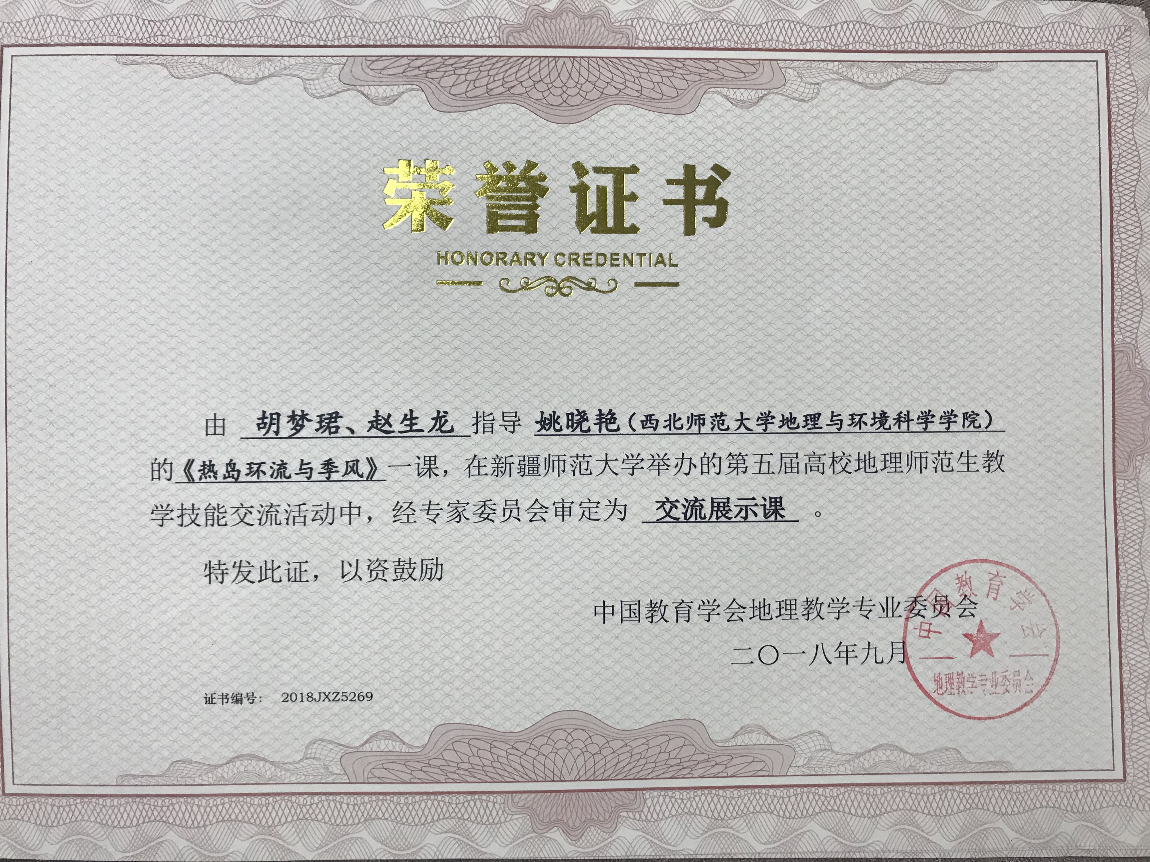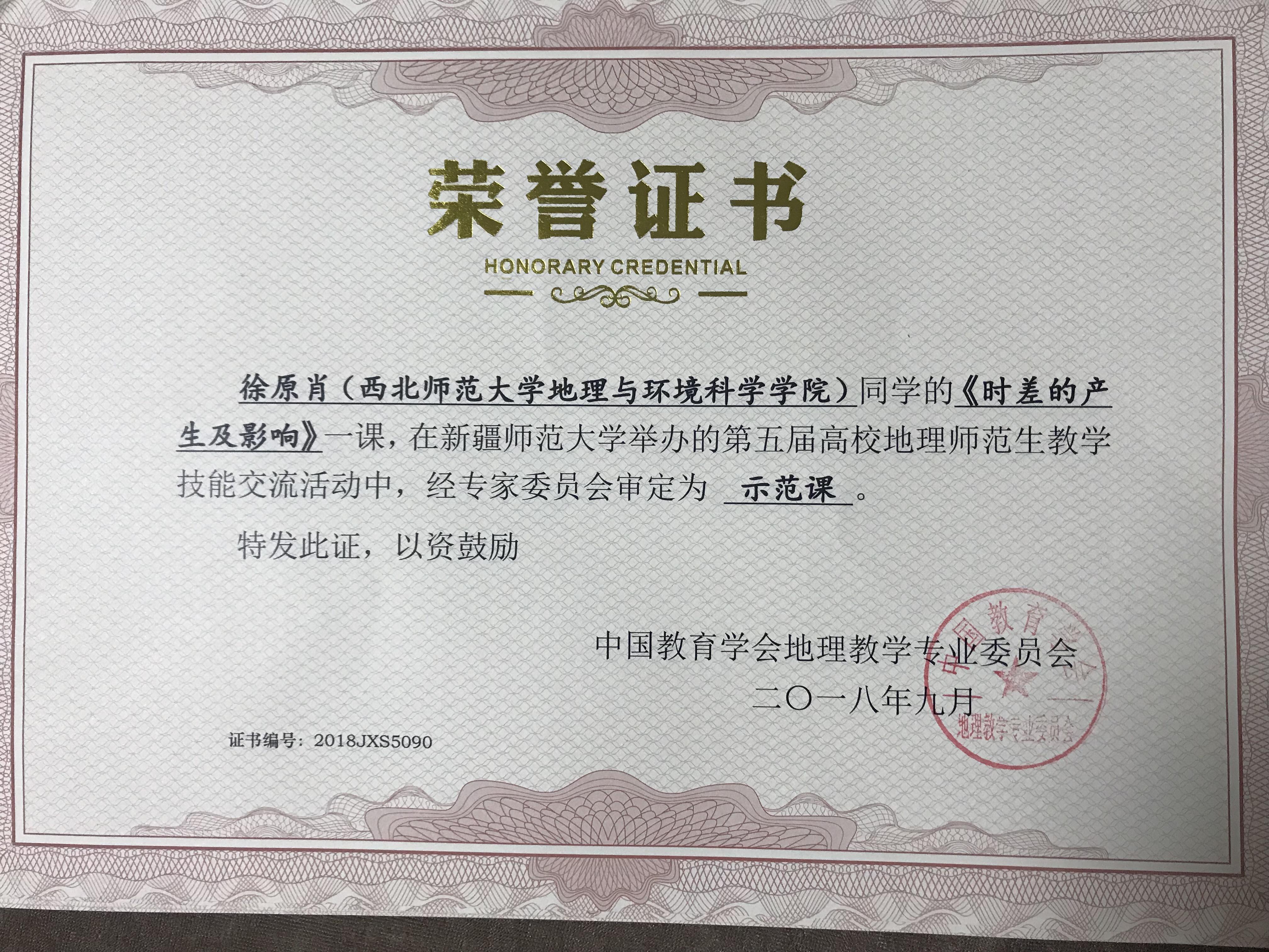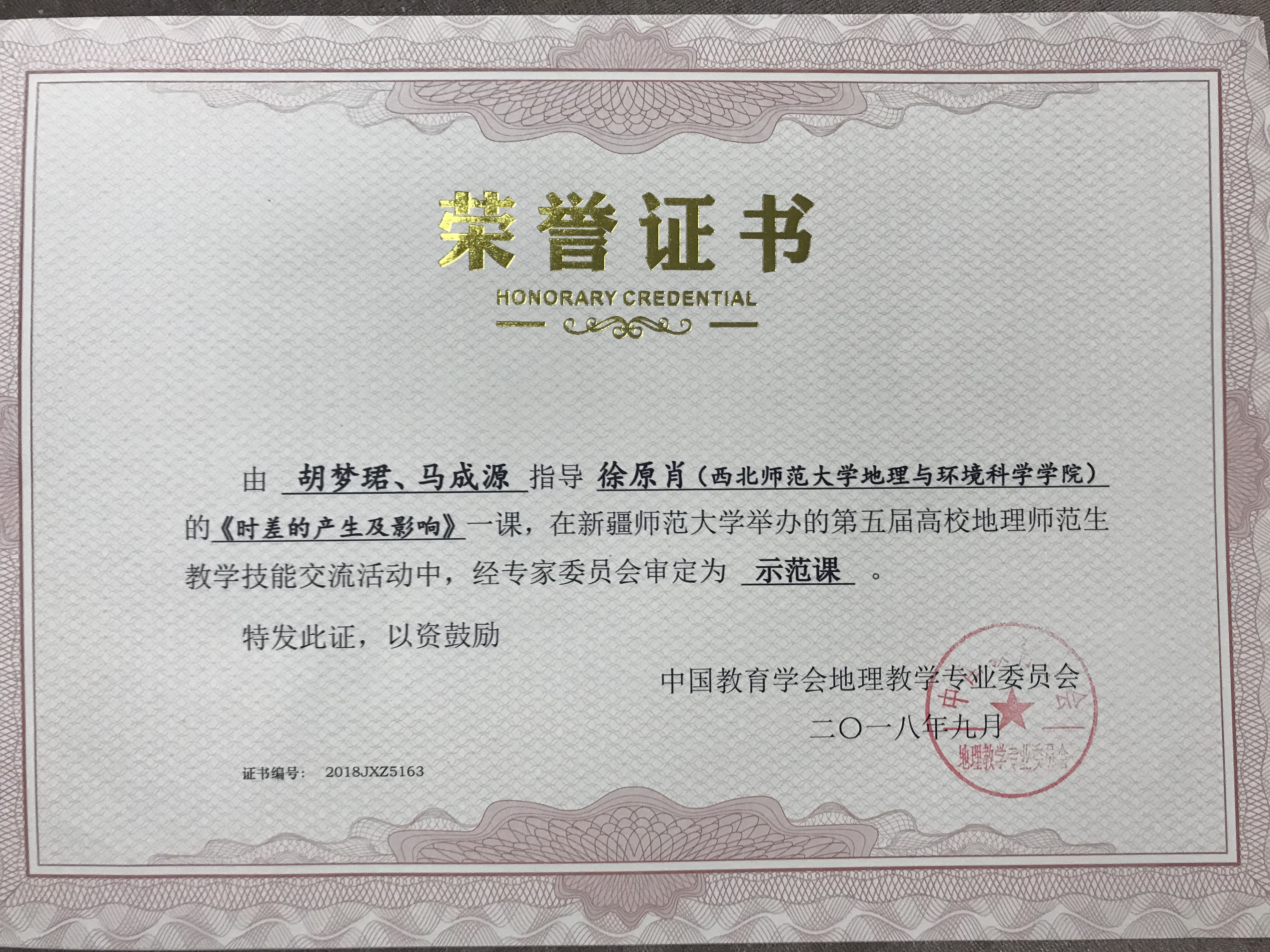 公司徐原肖同学的《时差的产生及影响》(指导教师:胡梦珺、马成源)经专家委员会审定为“示范课”、姚晓艳同学的《热岛环流与季风》(指导教师:胡梦珺、赵生龙)被审定为“交流展示课”。