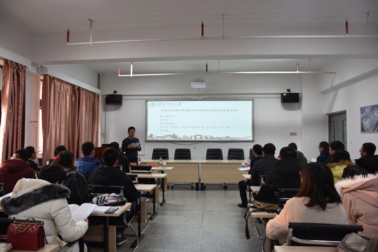 “研究生分会场报告”由“自然地理分会场”、“综合地理分会场”和“环境科学与环境工程分会场”组成,共有34名研究生参加会场报告。其中,“自然地理分会场”于综合楼A801举行,由焦亮副教授、王圣杰副教授和柳景峰讲师担任评委,焦亮副教授为评委组组长,共有13名研究生做学术报告。“综合地理分会场”于综合楼A717举行,由潘竟虎教授、赵锐锋教授和刘春芳副教授担任评委,潘竟虎教授为评委组组长,共有10名研究生做学术报告。“环境科学与环境工程分会场”于综合楼A810举行,由辛存林教授、张松林教授和曹建军副教授担任评委,辛存林教授为评委组组长,共有11名研究生参加学术报告。