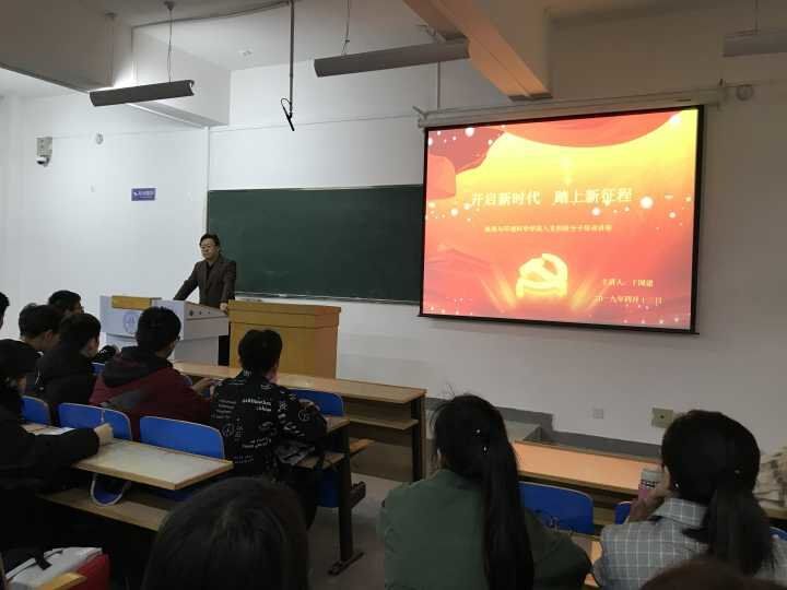 在开班仪式上,于国建书记首先给全体培训学员通报了培训时间和培训方式,并对参训学员提出了思想上高度重视、行动上自觉投入的学习要求。开班仪式结束后,于书记给全体入党积极分子作了题为《开启新时代 踏上新征程》的首场报告。报告从习近平总书记十九大报告中的“青年兴则国家兴,青年强则国家强”一段论述开篇,简单介绍了党的十九大报告相关内容,介绍了习近平新时代中国特色社会主义思想相关精神,介绍了“四个自信”、“四个意识”相关内容,并要求青年员工坚定理想信念、担负历史使命、争做“四有”新人、为实现中华民族伟大复兴的中国梦贡献自己的青春和智慧。