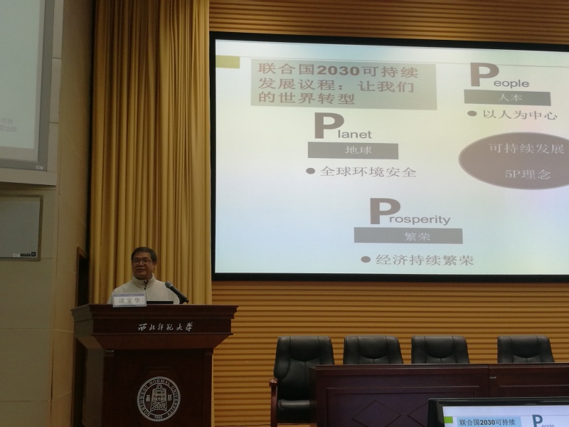 潘家华研究员围绕“生态文明”这一主题,系统介绍了全球经济格局的演化进程,并指出世界发展对中国的影响;详细阐述了全球排放格局的演化,分析了发达国家和发展中国家对减排的贡献,倡导建立生态、绿色、宜业、宜居的新型城市;提出5P发展理念(Planet, People, Partnership, Peace, Prosperity)及可持续发展的17大目标;最后指出变革转型是基于自然的解决方案,要以可持续能源转型为产业导向、将化石燃料的终结作为新经济增长点,实现人与自然和谐的平衡发展。报告结束后,与会师生与潘家华研究员进行了热烈深入的探讨和交流。