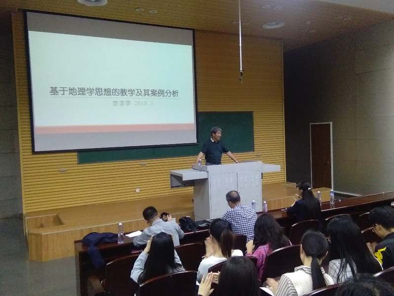 袁老师的报告主要从中学地理教育的思路方法、教材编写理念等方面,结合自己多年的积累和感悟,介绍了中学地理教学中体现的地理学基本思想和相关的具体案例。报告循循善诱、深入浅出、全程充分互动,深深吸引了在场师生,产生了良好反响。对地理科学专业师范类员工提高师范素养有很大帮助。