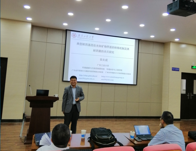应公司邀请,国家杰出青年基金获得者、广东工业大学环境健康与污染控制研究院经理安太成教授5月28日来公司作学术交流,并做了题为“典型耐药基因在光和矿物界面的转移机制及其耐药菌的杀灭机理研究”学术报告。公司师生100余人参加了报告会,报告由经理张明军教授主持。