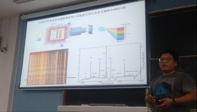 李正阳副研究员首先从天文学发展入手,介绍了光学望远镜的技术发展历程及目前世界著名大型望远镜的特点,随后介绍了南极Dome A巡天望远镜在超新星、变星、系外行星领域的观测成果,重点对AST3-2于2017年成功观测到首个双中子星合并产生的引力波事件做了详细介绍。最后介绍了目前主要的天文观测前沿问题。李老师的报告引起在场师生的浓厚兴趣,现场就大家感兴趣的地外生命探索、虫洞与时空穿梭、《三体》、阵列射电望远镜、中国天眼FAST以及个人天文观测设备等话题进行了深入交流。整场报告具有很强的专业性并且内容生动丰富,对听众深入了解天文知识和激发大家的探索欲望有很大帮助。