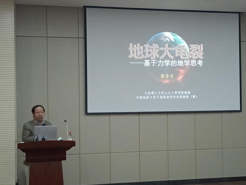 报告会上,唐春安教授以自然界中微观与宏观层面形形色色的龟裂现象为例,提出“地球大龟裂”的基本概念,推演了地球演化热驱动方程及证明触发地球灾变的条件,并重点阐述了地球大龟裂的演化和灾变过程的8个推论。期间公司师生与唐春安教授积极互动和交流,开阔和激发了师生们的研究视野和科研热情。