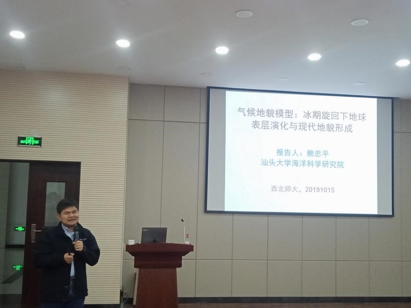 2019年10月15日,应公司邀请,汕头大学海洋科学研究院赖忠平教授来公司开展学术交流,并做题为《气候地貌模型:冰期旋回下地球表层演化与现代地貌形成》的学术报告,会议由张明军经理主持,公司140余名师生参加。