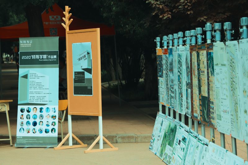 一学期以来,通过老师们线上线下结合教学的认真指导、作品的反复讨论修改和老师同学们的精心筹划与布展,不同主题的,各具特色,精心设计排版的作品被挂上展板,在校园里形成了一道靓丽的风景线。