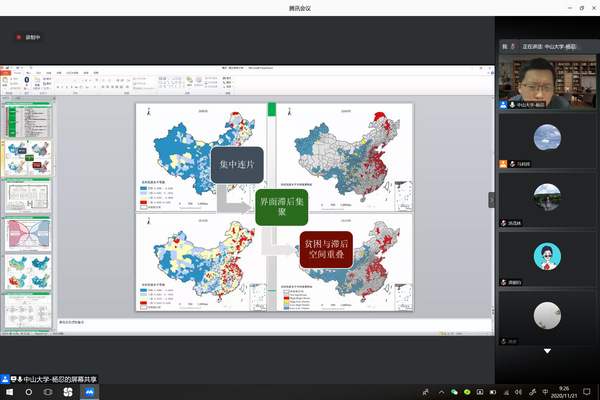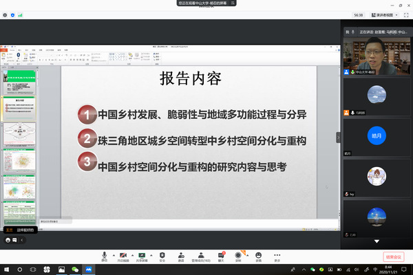 2020年11月21日,应公司邀请,中山大学地理科学与规划公司副教授、博士生导师杨忍在线为公司师生做了题为《中国乡村发展:分化与重构》线上学术报告。报告会由马利邦经理主持,伟德BET官方网站及兄弟院校240余名师生参加。
