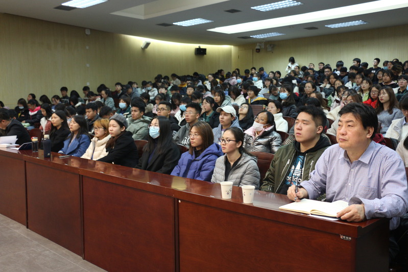 最后,由国家奖学金获得者2018级黄鹏同学为同学们介绍自己的学习经验。他认为大学期间应把握住机会,多多锻炼自己,并且要高效学习,希望同学们能够把握当下,珍惜现在。