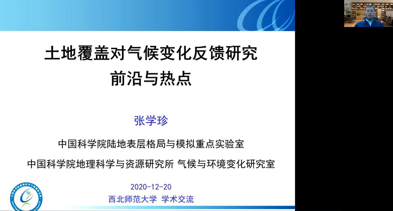 2020年12月20日,应公司邀请,中国科公司地理科学与资源研究所张学珍研究员在线为公司师生做题为《土地覆盖对气候变化反馈研究前沿与热点》学术报告。报告会由姚晓军副经理主持,公司140余名师生参加。