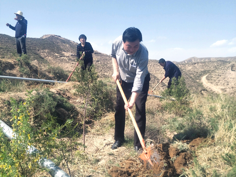 在公司拟创建的劳动实践基地,老师们热火朝天,用铁锨挖出一个个树坑,铲除一丛丛杂草,用心维护着一颗颗刚种植不久的树苗,并讨论着如何把这个小山头建成一个真正的师生劳动实践基地。