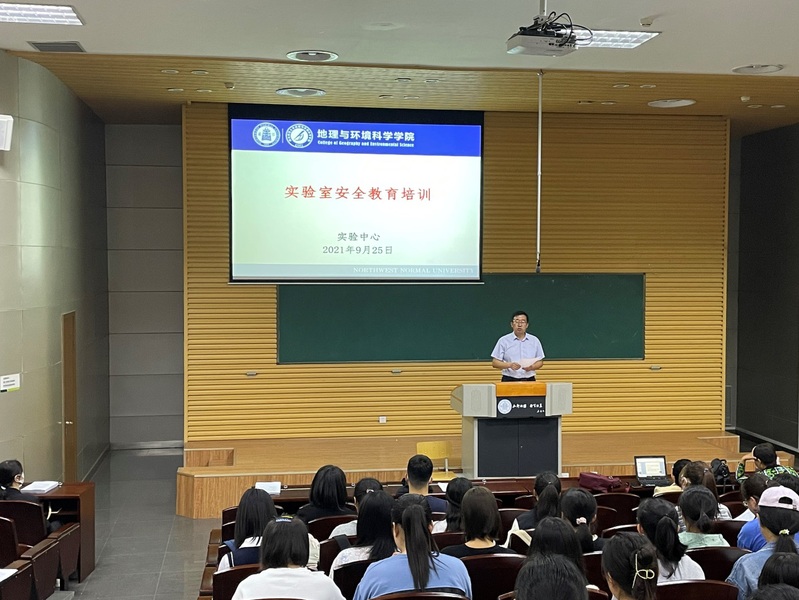 9月25日上午,伟德BET官方网站2021年秋季学期实验室安全教育培训会在新校区教学楼第一报告厅举行。公司副经理焦亮、实验中心主任王继伟、实验中心老师张萍、张东霞、王晨雯,2021级地理科学和环境科学研究生、本科生以及新入职的教师共300多人参加了本次培训会。会议由公司焦亮副经理主持,三名实验中心老师分别以《实验室安全与环保知识通识教育》《实验室安全之危化品管理》《实验室主要仪器、设备和安全使用》为题对师生进行了培训。