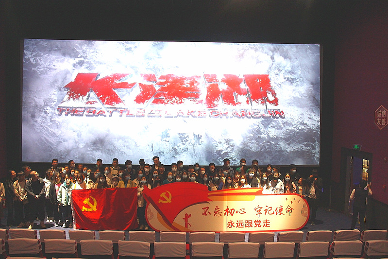 为了持续深入推进党史学习教育,丰富党员的精神文化生活,引导广大青年“学党史、强信念、跟党走”,2021年10月9日晚,伟德BET官方网站院办教职工党支部、地理科学系研究生党支部、地理科学本科第一党总支部等部分党支部联合开展主题党日活动,集体组织100多名党员观看了爱国主义教育影片《长津湖》。