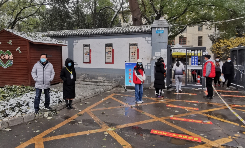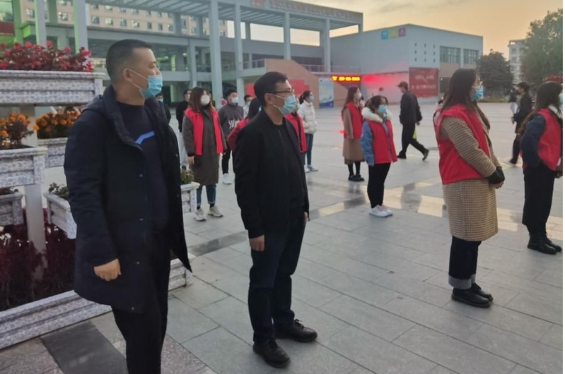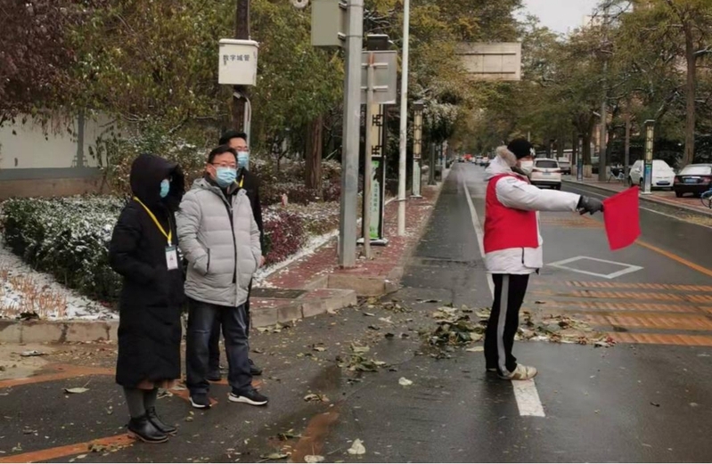 11月6日下午,兰州市气温降到0℃以下,天空飘着雪花。于国建书记来到参与公司南门值班的党员先锋岗和青年志愿者身边,看望现场的辅导员和员工志愿者,并与他们一起值班,代表公司全体教职工向参与志愿服务的员工致以崇高敬意和由衷感谢!于国建要求现场辅导员要关心关注员工的自我防护和身体健康,叮嘱做好轮岗、轮班,叮嘱根据气温增加衣服,高度关注横穿马路时的员工交通安全;于国建要求全体教职工要坚决落实公司疫情防控工作部署要求,主动担责,切实压实工作责任,创新工作方式,突出对员工的人文关怀和心理健康指导,引导员工自主适应疫情防控常态化下的各项管控措施,立足本职岗位,主动担当作为;于国建要求全体党员要身先士卒,冲锋陷阵,严格遵守甘肃省纪委监委疫情防控“八个严禁”纪律要求,切实落实公司党委《关于全力做好新冠肺炎疫情防控工作充分发挥基层党组织战斗堡垒作用和党员先锋模范作用的通知》精神,扛起责任,形成合力,冲锋在先,坚决守护全体师生的生命安全和身体健康,坚决打赢疫情防控遭遇战、阻击战。