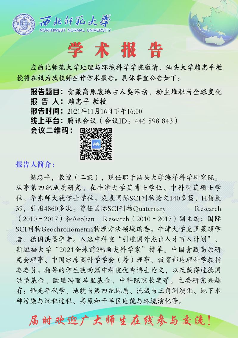 伟德BET官方网站前沿学术报告 2021-20期:青藏高原腹地古人类活动、粉尘堆积与全球变化