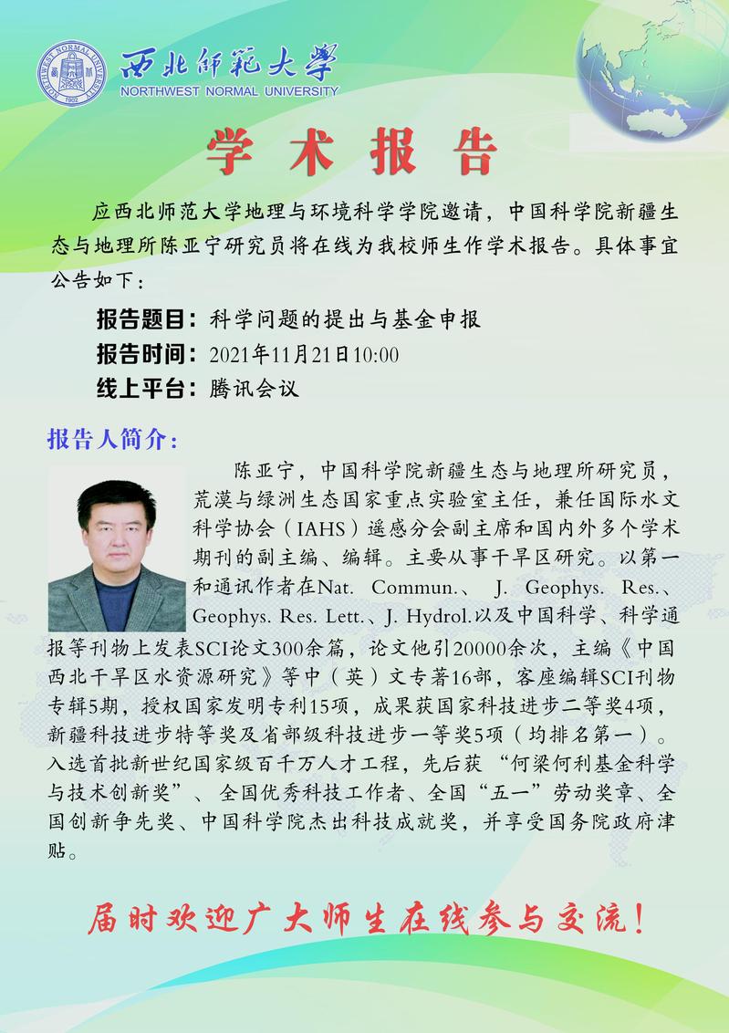 伟德BET官方网站前沿学术报告 2021-23期: 科学问题的提出与基金申报