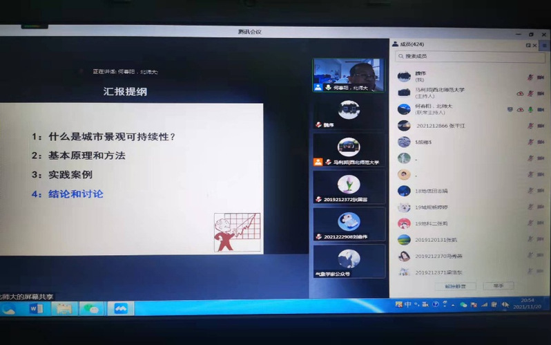 2021年11月20日,应伟德BET官方网站、甘肃省绿洲资源环境与可持续发展重点实验室邀请,北京师范大学何春阳教授做题为《流域城市景观可持续性研究的方法和实践》学术报告,报告会由马利邦经理主持,公司400多名师生参加。