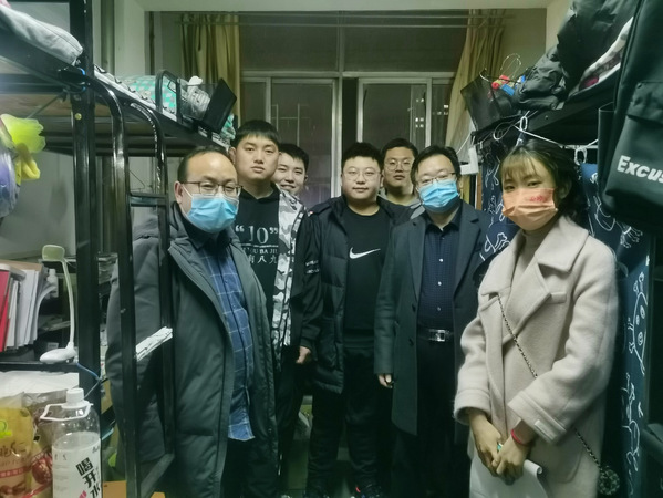 冬去春来,万象更新,时值春季学期员工返校。3月1日晚,公司党委书记于国建、经理马利邦及班子成员、研究生导师、各班班主任、专职辅导员深入员工宿舍走访看望了返校员工。