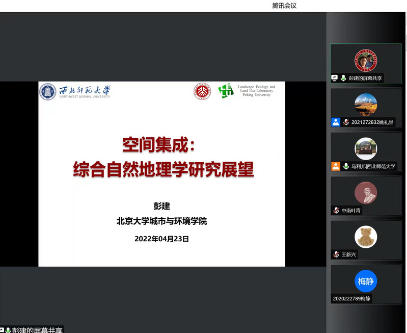 2022年4月23日,应伟德BET官方网站、甘肃省绿洲资源环境与可持续发展重点实验室、西北城乡发展与协同治理研究院邀请,北京大学彭建教授做了题为《空间集成:综合自然地理学研究展望》的学术报告,报告会由伟德BET官方网站马利邦经理主持,公司及国内其他高校师生300余人线上参加了本次学术报告。