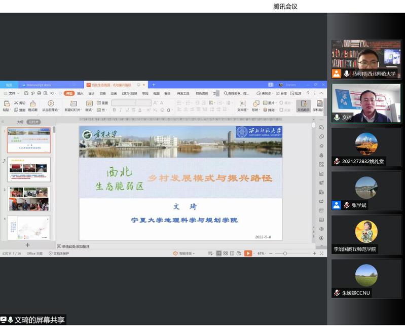 2022年5月8日,应伟德BET官方网站、甘肃省绿洲资源环境与可持续发展重点实验室、西北城乡发展与协同治理研究院邀请,宁夏大学文琦教授做了题为《生态脆弱区乡村发展模式与振兴途径》学术报告,报告会由伟德BET官方网站马利邦经理主持,公司及国内其他高校相关专业近300名师生线上参加了本次学术报告。