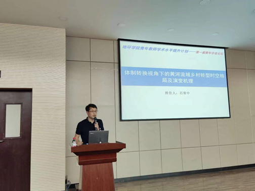 城市与资源学系石育中副教授做了题为《体制转换视角下的黄河流域乡村转型时空格局及演变机理》的学术报告。报告以黄河流域榆中县为研究区,探讨了榆中县内不同区域间人口转型、土地转型和产业转型的时序变化以及空间格局特征,结果分析表明榆中县农户生计呈现多路径转型特征,固定资产投资是决定榆中县乡村转型的关键因素。