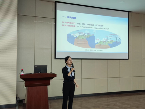 地理科学系周海香老师做了题为《基于广义互补原理的黄土高原蒸散估算及归因分析》的学术报告。报告以黄土高原为研究区,探究了广义蒸散互补模型参数αe在年尺度的取值范围、影响因素和内涵,并利用广义蒸散互补模型估算了黄土高原的蒸散量。结果表明参数αe是受干燥指数影响的综合参数,并展望了未来相关研究方向。