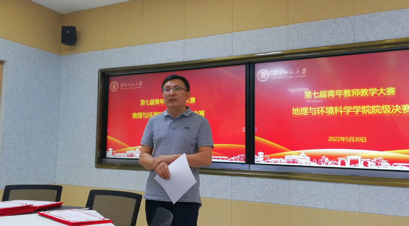 各位评委从教学内容、教学组织、教学技能、教学特色和教学效果等方面对每位参赛教师的教学展示进行了公正评审和精彩点评。评委会主席马正学教授充分肯定地理与环境科学学经理期以来重视本科教学的质量、重视青年教师的培养、重视个人教学能力的提升,近年来成效显著;在对各位比赛教师的教学展示进行逐一点评的同时,鼓励青年教师在教学中保优点,改不足,教研同行,站稳讲台,快速提升。各评委指出了每位教师在教学内容选取、教学活动组织、知识的科学性、语言的准确性、教姿教态、仪容仪表等方面存在的不足,同时就如何将比赛收获用于赛后教学,达到以赛促教的效果提出了建设性的意见和建议。