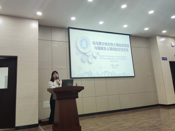 地理信息学系陈翔老师做了题为《毛乌素沙地生物土壤结皮覆盖与植被及土壤间的交互关系》的学术报告。报告以毛乌素沙地为研究区,利用结构方程模型探究了生物土壤结皮与植被、土壤间的交互关系,并通过关联分析挖掘三者间的强关联规则。最后阐述了研究的难点与未来相关研究的方向。