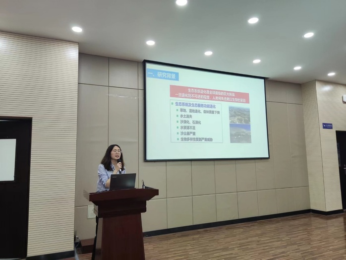 地理信息学系修丽娜副教授做了题为《生态建设工程对植被恢复的作用—以黄土高原为例》的学术报告。报告以黄土高原水土流失、草地退化、森林质量下降等生态问题为研究背景,分析了生态工程实施前后区域生态系统格局和生态系统面积变化,以及植被质量时空变化与影响因素等,研究可为黄土高原生态建设工程实施与生态系统保护提供科学依据。