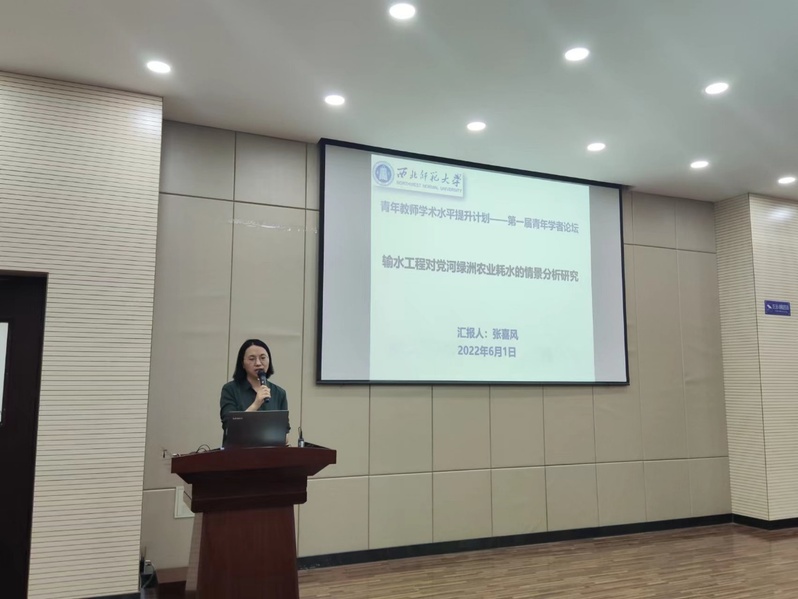 地理信息学系张喜风副教授做了题为《输水工程对党河绿洲农业耗水的情景分析研究》的学术报告。报告以党河绿洲为研究区,利用系统动力学模型探究了在引哈济党工程背景下,现状发展情境、节水输水情境和生态维护三种情境下党河绿洲的农业耗水量变化,结果表明:与压减绿洲耕地面积相比,提高节水效率、增加节水面积是降低农业耗水总量行之有效的方法之一。