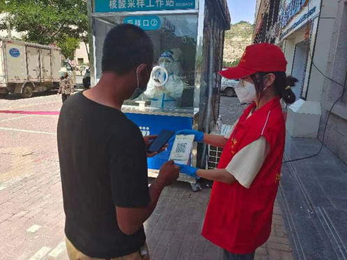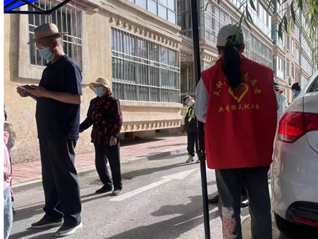 暑期在家中休息的史艺杰接到自己所在的石河子北泉镇清泉社区的电话:“同学你好!我们社区接到紧急通知组织全员核酸,急需帮助扫码的志愿者,请问下午三点到七点之间有时间吗?因为此次做核酸通知紧急,社区这边人手不够……”“没问题,我有时间。”今年史艺杰被党支部推荐成为了入党积极分子,她表示更要响应党的号召为疫情防控做贡献。在三十几度的高温天气下进行了6小时的志愿活动,结束后史艺杰衣服常常都湿透了,但是能够协助医务人员更好的完成核酸检测,为疫情防控尽自己的绵薄之力,她认为是值得的。