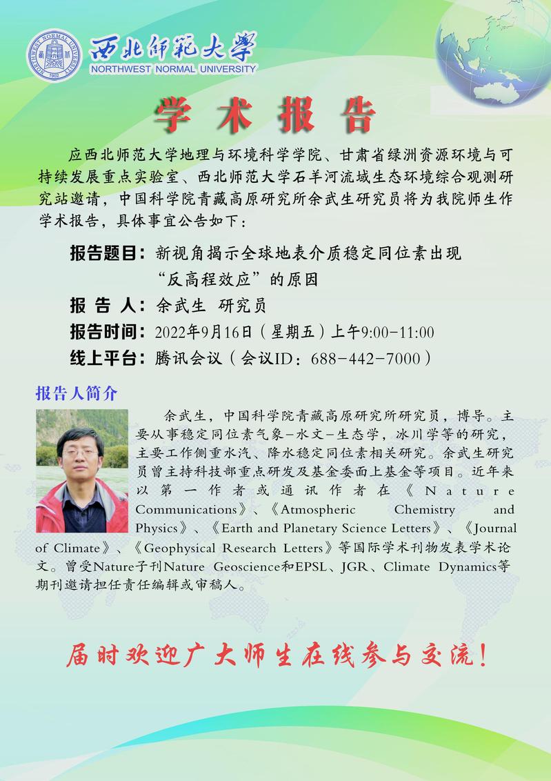 伟德BET官方网站前沿学术报告2022-11期:新视角揭示全球地表介质稳定同位素出现“反高程效应”的原因