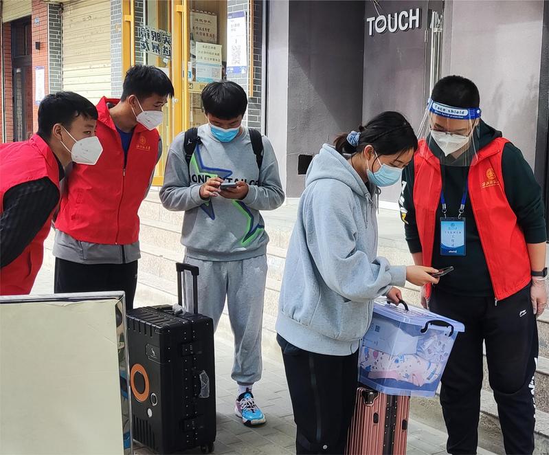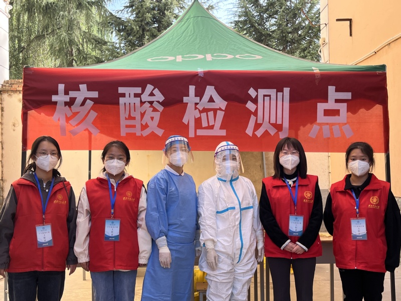 当日早晨7时,辅导员老师和员工志愿者已经准时到达指定工作地点,直到晚上11时工作结束,全天志愿服务时间长达16小时。曹珍璇老师带领8名员工志愿者在汽车东站负责员工返校接站工作,他们指导返校员工进行抗原检测,帮助员工搬运行李,将汗水挥洒在志愿服务工作的最前线。何浩东、牛粉霞、郭拯东辅导员老师们和“红马甲”员工志愿者们在云亭校区、兰天公寓、党校员工公寓热情引导员工查验健康码,组织员工抗原检测、核酸检测,指引员工入住隔离公寓,忙碌地穿梭在校园的各个角落。