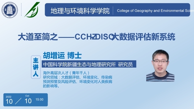 2022年10月10日,应伟德BET官方网站、甘肃省绿洲资源环境与可持续发展重点实验室邀请,中国科公司新疆生态与地理研究所胡增运研究员做了题为大道至简之——CCHZ-DISO大数据评估新系统的学术报告。报告会由伟德BET官方网站焦亮副经理主持,公司教师、研究生以及国内其他高校相关专业300余名师生线上参加了本次报告。