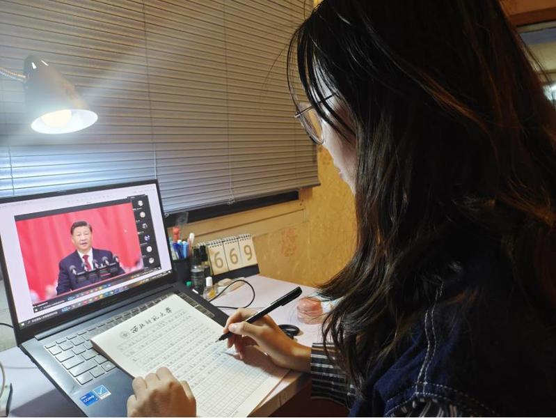 2021级地理科学1班团支部书记杜嘉玟同学说:“五年筑梦,五年奠基,五年启航。二十大承载着中华民族几千年的梦想,凝结了全党和全国人民的智慧和汗水。我将始终保持积极进取、勇于担当的精神状态,通过刻苦努力的专业知识学习,以实实在在的业绩,向党与国家提交一份满意答卷。”