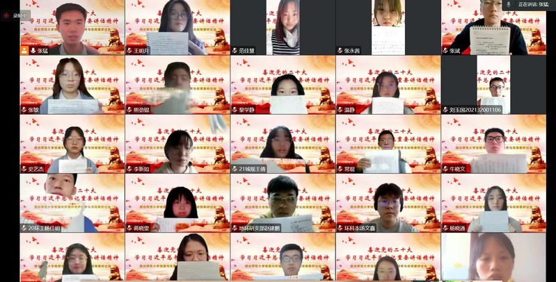 通过聆听学习党的二十大报告,地环学子们一致认为,新时代中国十年的伟大变革具有里程碑意义。作为新时代青年,员工党员和青年团员要勇担历史使命,责无旁贷地参与到国家现代化建设中。这既是一种机遇,更是一种挑战。生于盛世,见证百年,蓝图绘就,责任在肩。在实现第二个百年目标的历史新征程中,地环学子们听党话、跟党走,努力提升自己的知识和技能,用自己的青春奋斗和优异成绩努力书写梦想、责任与担当的绚丽华章。