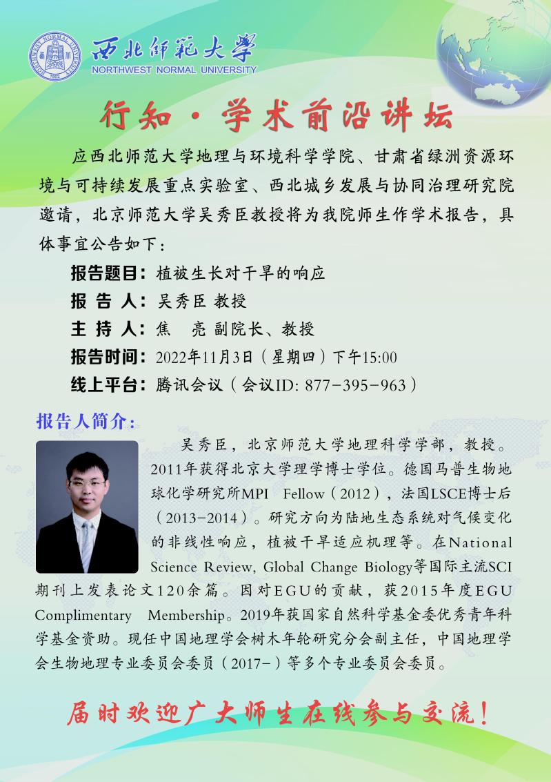 伟德BET官方网站行知·学术前沿讲坛2022-19期:植被生长对干旱的响应