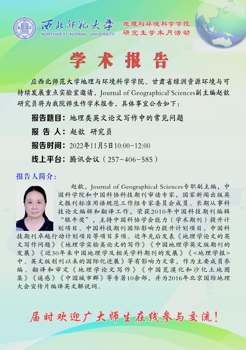 伟德BET官方网站研究生学术月活动系列之一——编辑之声:01 地理类英文论文写作中的常见问题