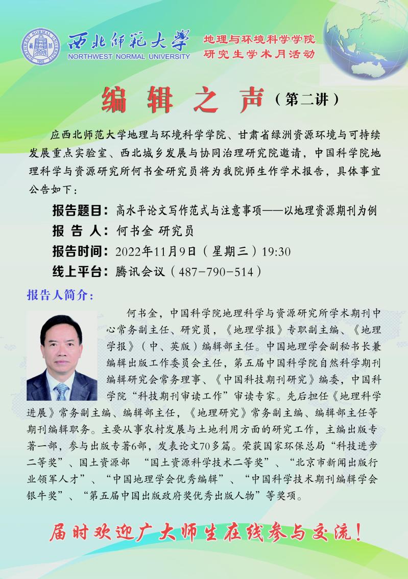 伟德BET官方网站研究生学术月活动系列之一——编辑之声:02 高水平论文写作范式与注意事项——以地理资源期刊为例