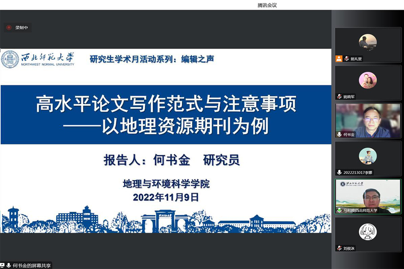 2022年11月9日,应伟德BET官方网站、甘肃省绿洲资源环境与可持续发展重点实验室、西北城乡发展与协同治理研究院邀请,中国科公司地理科学与资源研究所何书金研究员做了题为《高水平论文写作范式与注意事项——以地理资源期刊为例》的学术报告,报告会由伟德BET官方网站经理马利邦教授主持,公司教师、研究生,以及国内其他高校相关专业共300余名师生线上参加了本次报告。