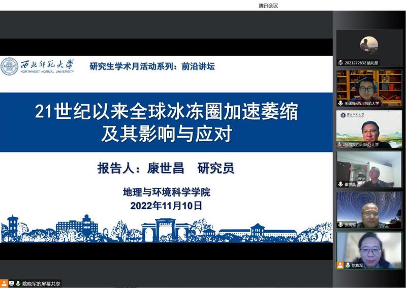 2022年11月10日,应伟德BET官方网站、甘肃省绿洲资源环境与可持续发展重点实验室、西北城乡发展与协同治理研究院邀请,中国科公司西北生态环境资源研究院康世昌研究员做了题为《21世纪以来全球冰冻圈加速萎缩及其影响与应对》的学术报告,报告会由伟德BET官方网站副经理姚晓军教授主持,公司教师、研究生,以及国内其他高校相关专业共300余名师生线上参加了本次报告。